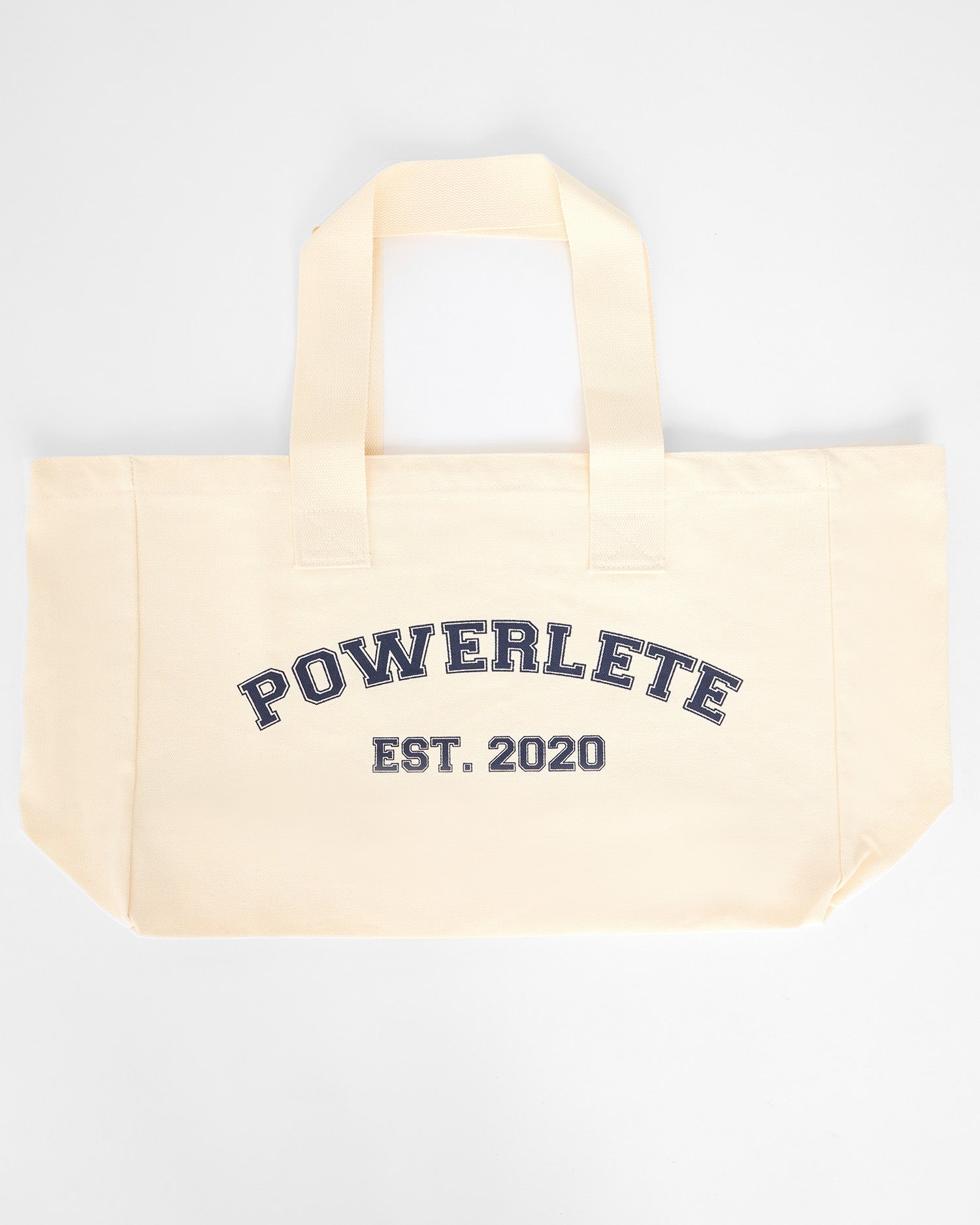 Ti presentiamo la Powerlete Varsity Tote, il tuo nuovo capo essenziale per tutti i giorni. In un beige neutro con un vistoso logo varsity in blu, questa tote è il perfetto connubio tra stile e funzionalità. Che tu stia andando in palestra, facendo commissioni o uscendo, è costruita per stare al passo con il tuo stile di vita frenetico. Pratica, durevole e senza sforzo, è la tua borsa ideale per affrontare qualsiasi giornata.